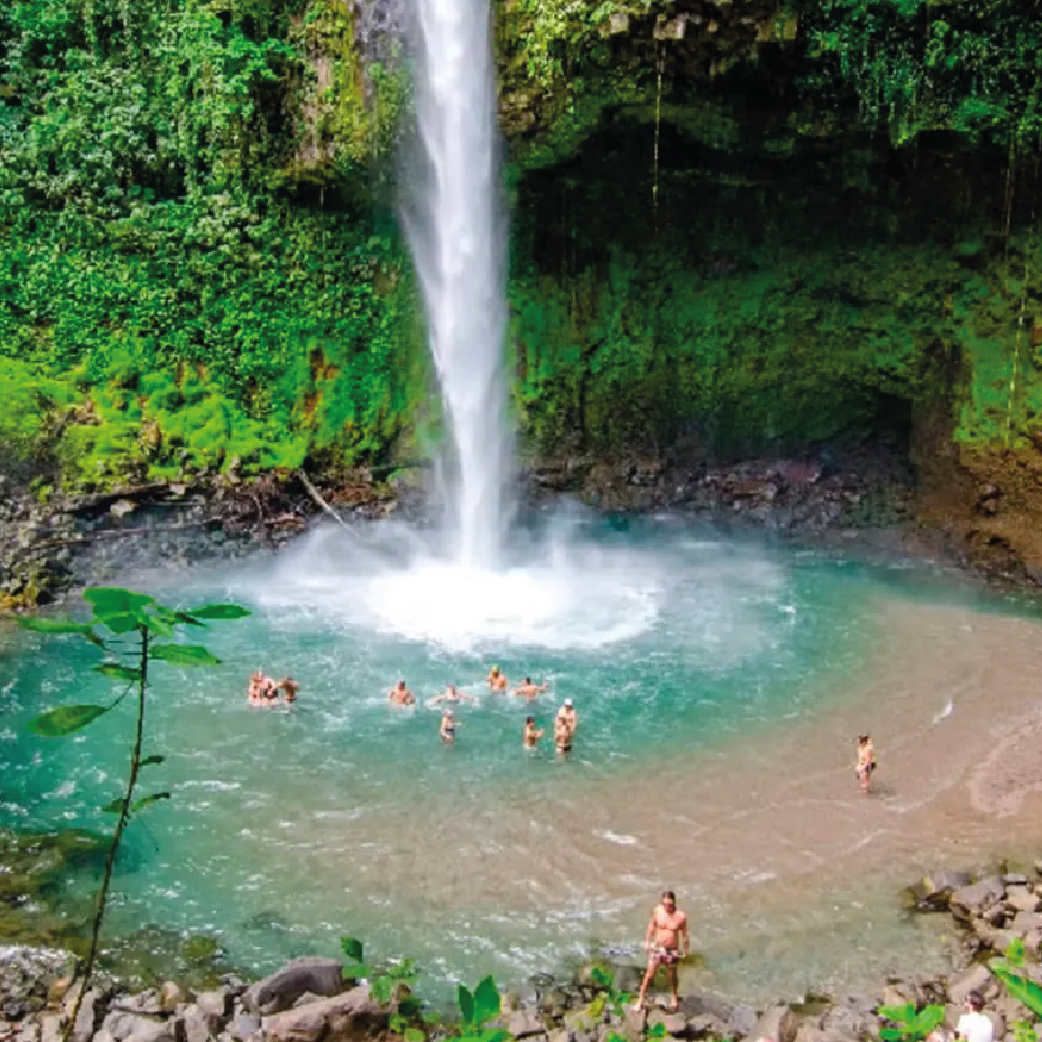 THEN WE WILL VISIT THE MAJESTIC LA FORTUNA WATERFALL, WHERE YOU CAN DESCEND TO THE BASE, SWIM IN THE CRYSTAL-CLEAR WATERS, AND ADMIRE ONE OF COSTA RICA’S MOST ICONIC NATURAL WONDERS.